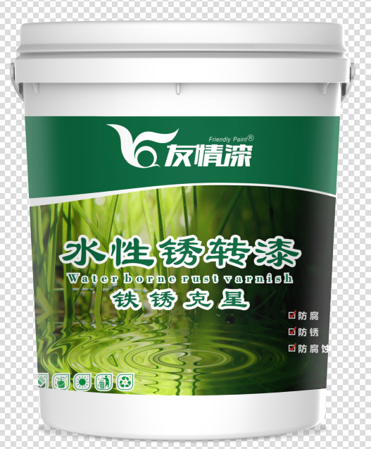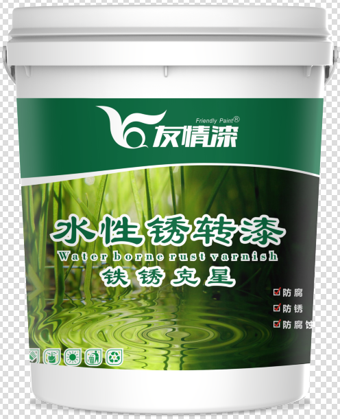 銹轉漆是一種可替代傳統的防銹底漆的涂料產品, 除含有一般涂料的組分外,還含有一種轉化劑,它能與鐵銹起化學反應,使有害的鐵銹轉化為無害的或具有一定保護作用的絡合物、鰲合物,用成膜物質予以固定而形成保護涂層。