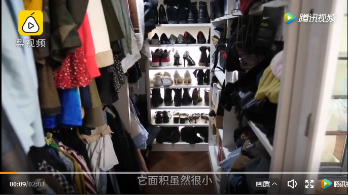 更“奢侈”的是,忻馨還給自己搞了個走入式衣帽間!這簡直是每個女生都想要的啊!